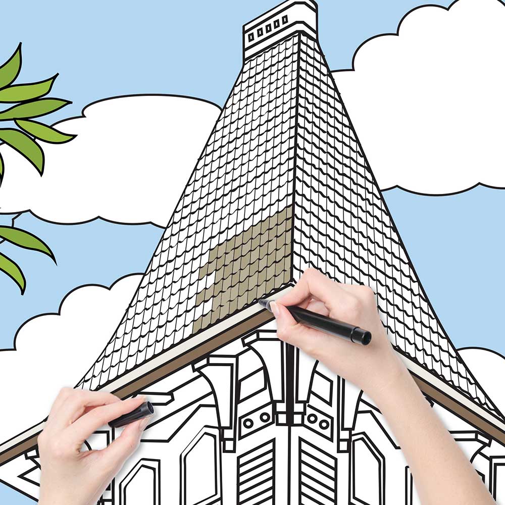 - Giant coloring banner for a Victorian House event- You can put it up as a banner for a backdrop for an event featuring Victorian houses or an architecture theme.
