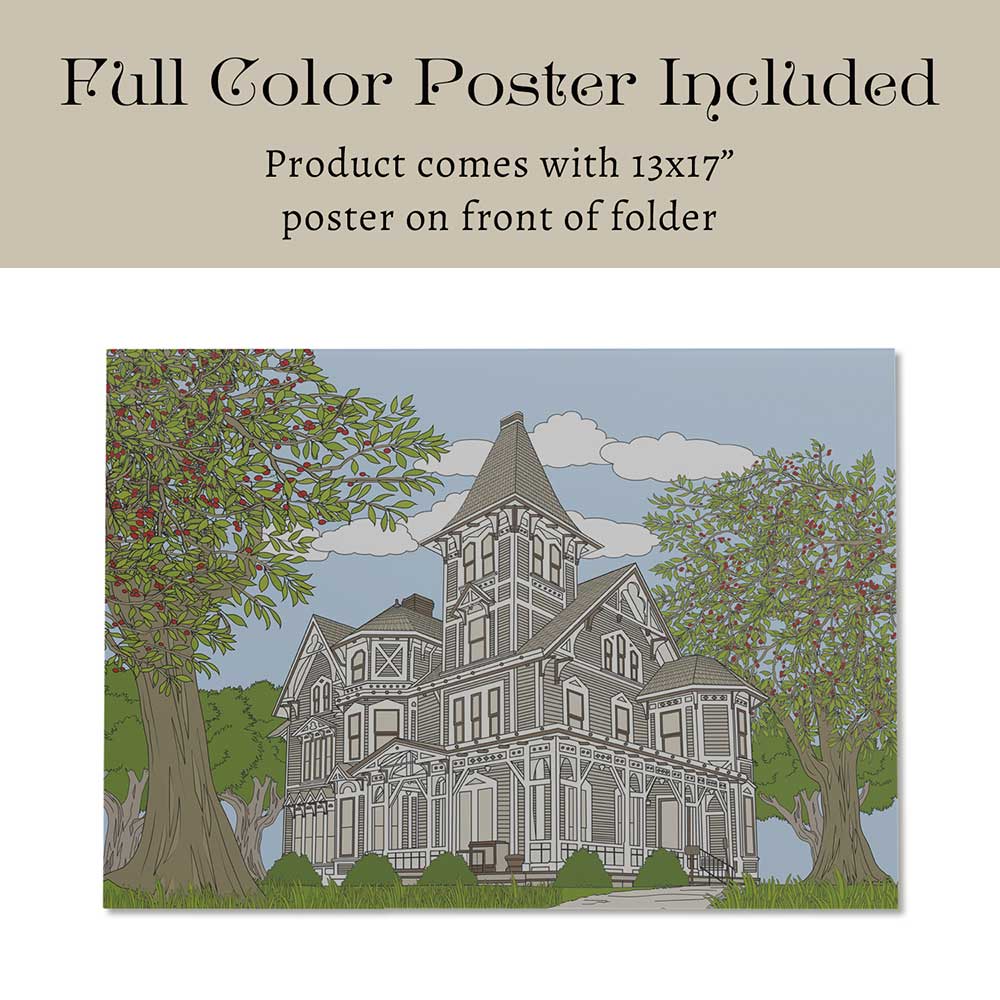 - Includes a full-color 13 x 17″ Victorian house poster (on front of folder)